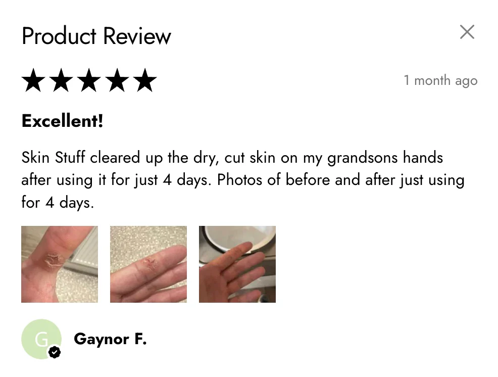 Together, these simple yet effective ingredients make Skin Stuff ideal for gentle daily care, especially for skin that’s sensitive, reactive, or easily unsettled.